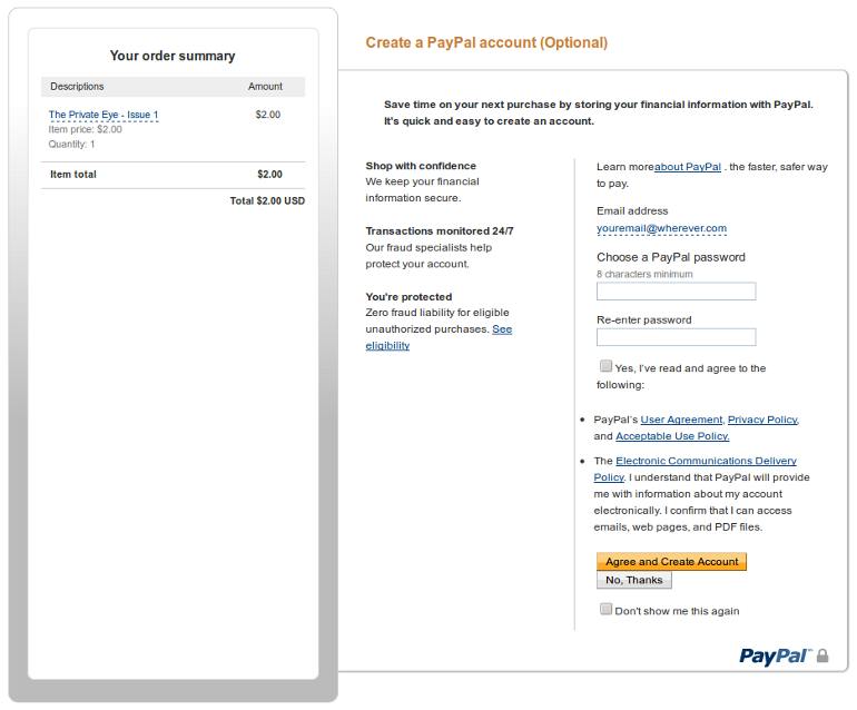 If your PayPal page looks as follows, just click on "Don't have a PayPal account?".